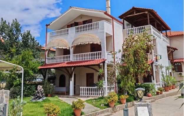 Nalazi se na oko 390m od plaže. U ponudi su studiji i apartmani u prizemlju i na prvom spratu.